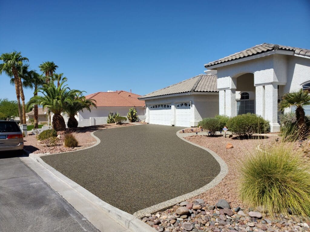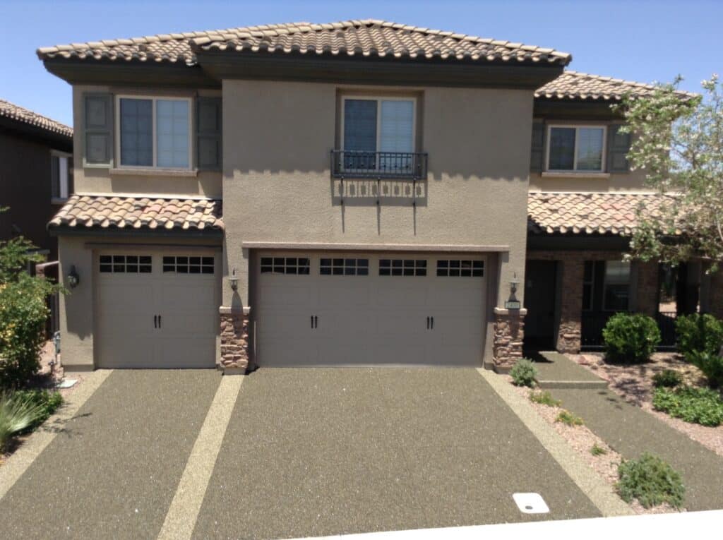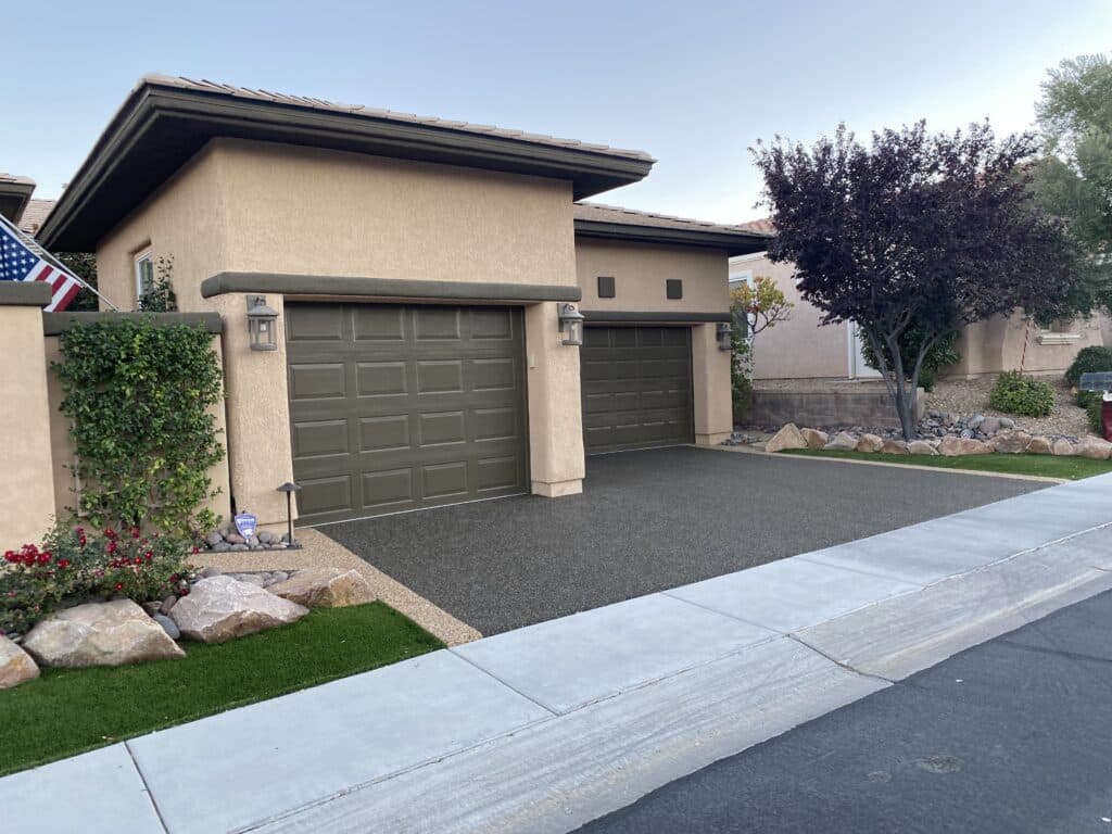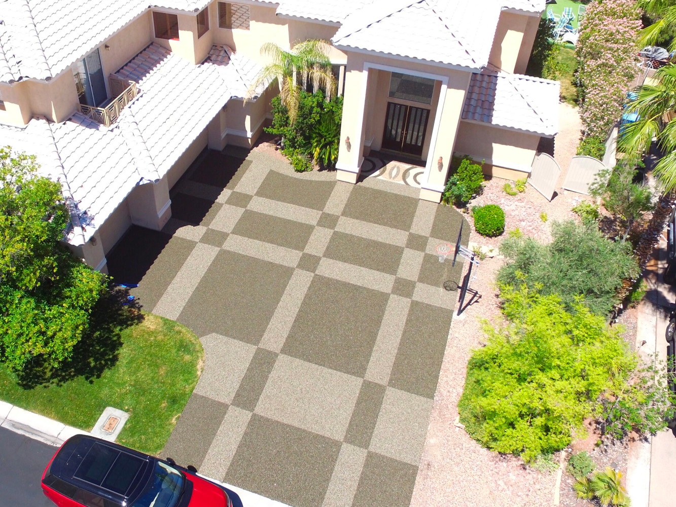 Driveways don’t have to be boring. Utilizing the concrete expansion joints we alternated the colors of Midnight and Twilight to create a truly eye popping patterned which showcases nicely.