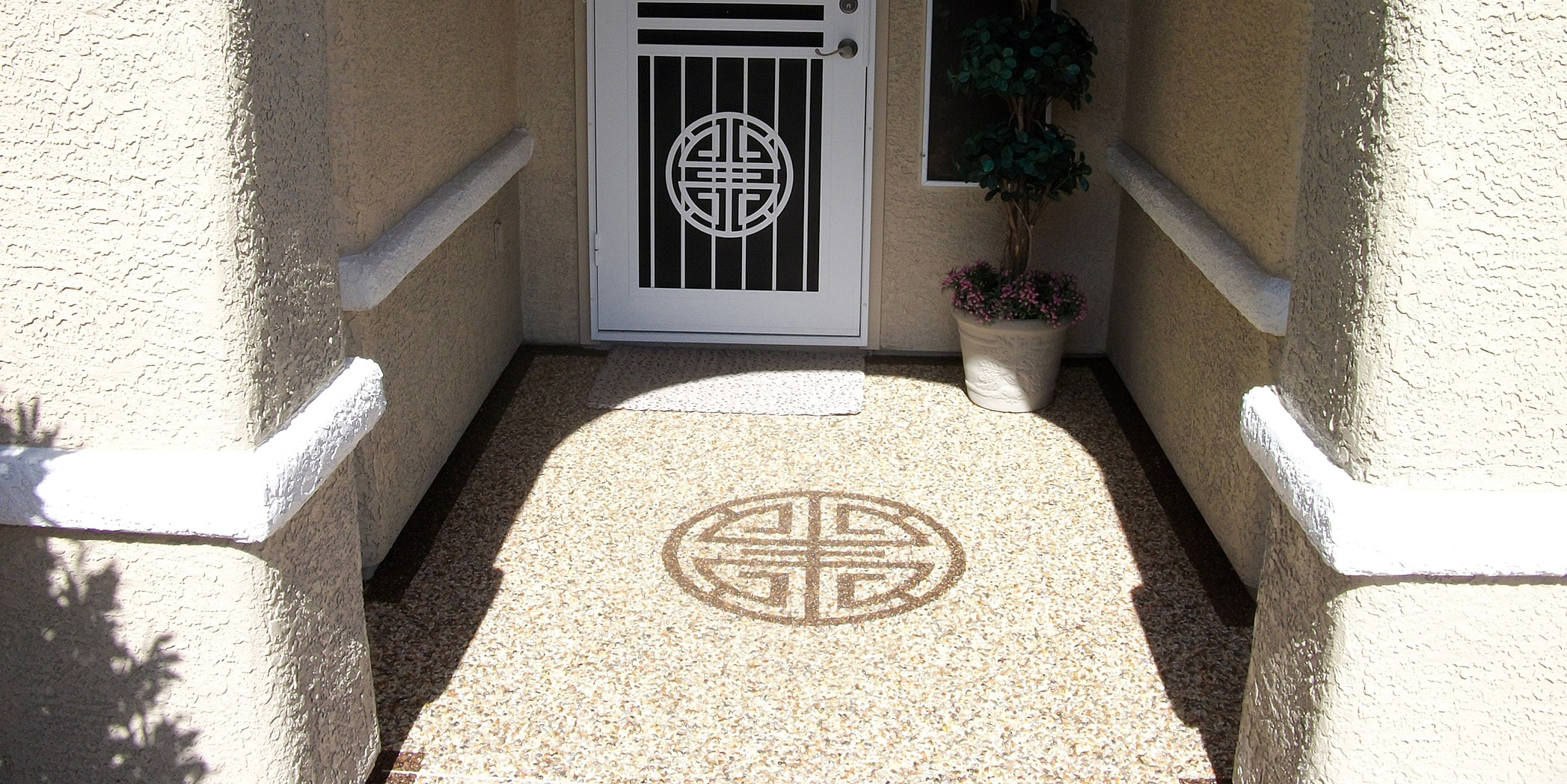 We were very excited to help our client with this request. At Pebble Stone Coatings, we understand that first impressions are important. That’s why we offer a wide range of design options to make your dream entrance come true. We are proud to have another happy customer whose foyer floor design perfectly compliments the design on their door.