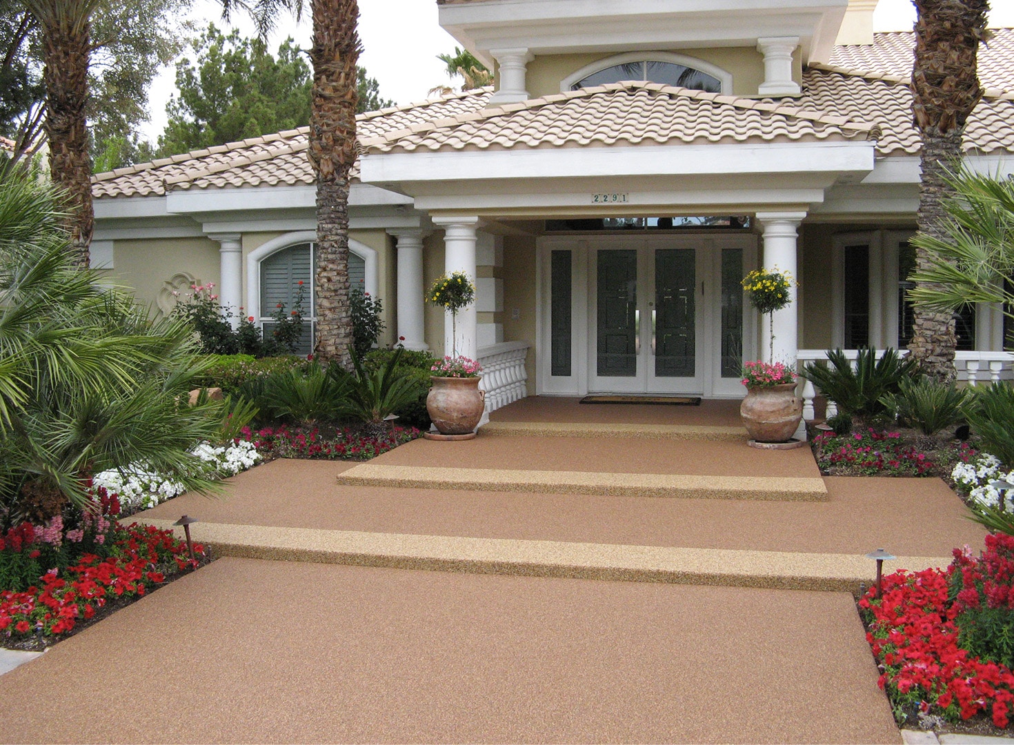 The client hired us to give him a new look for his entrance and we did not disappoint. We installed epoxy rock, which is not only UV resistant but also 100% natural river stones. This prevented discoloration and fading, in addition to giving it an elegant style to welcome guests. He was delighted with the results.