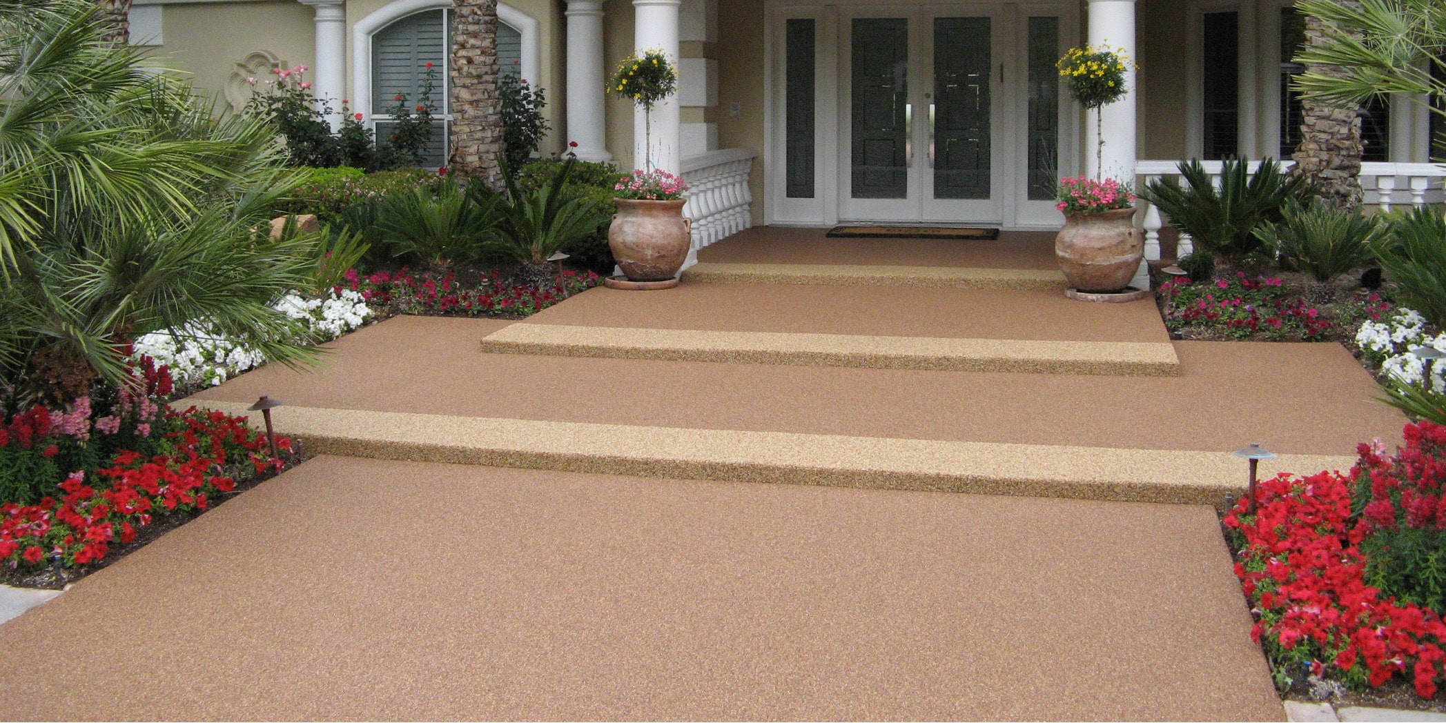 Our client needed to improve the appearance of his entrance since the surface was very deteriorated (discolored / faded) due to stained product fading overtime align with being slippery when wet. The surface of the entrance had a very bad appearance and the steps completely blended in.