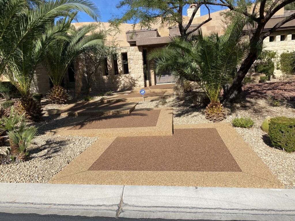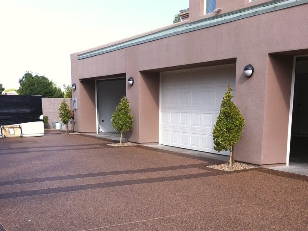 Small Driveway need to have some type of focus, using a darker base (Dark Razorback) helps minimise tiremark and the light border color of Coralite pulls the house color down into the surface
